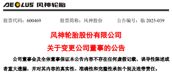 6月12日金多多配资,风神轮胎股份有限公司,发布人事变动公告。